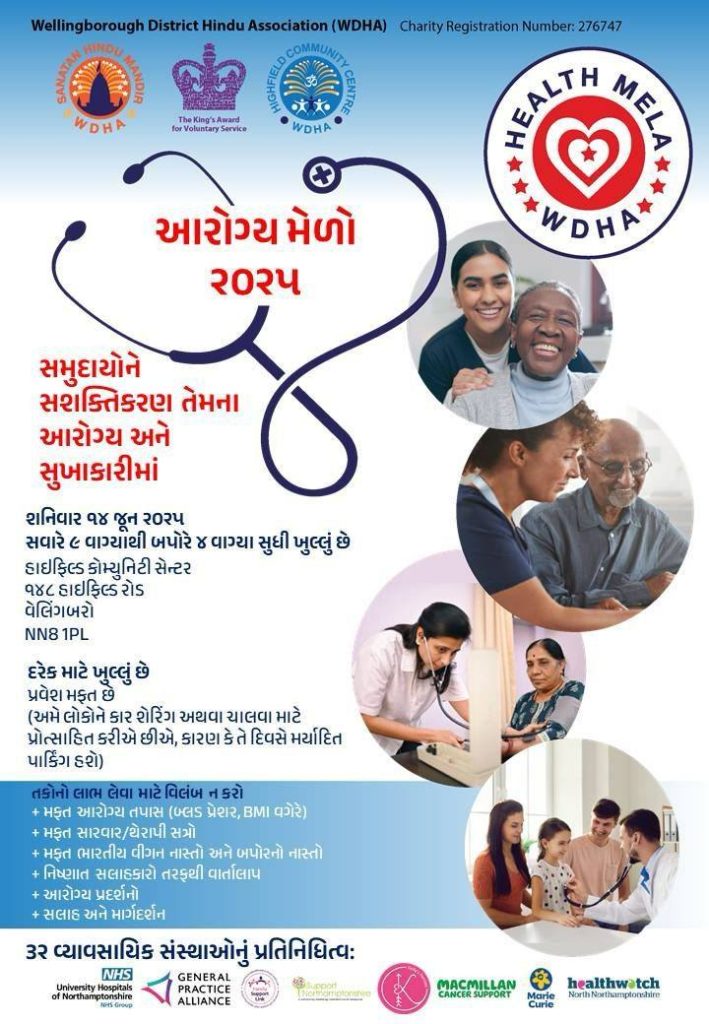 Welcome to WDHA Health Mela 2025! Join us for a day filled with health and wellness activities, informative workshops, and interactive sessions. This in-person event will be held at Highfield Community Centre, 148 Highfield Rd, Wellingborough, so mark your calendars and come meet health experts from across Northamptonshire and discover ways to improve your overall well-being. Don’t miss out on this opportunity to prioritise your health and have fun doing it!